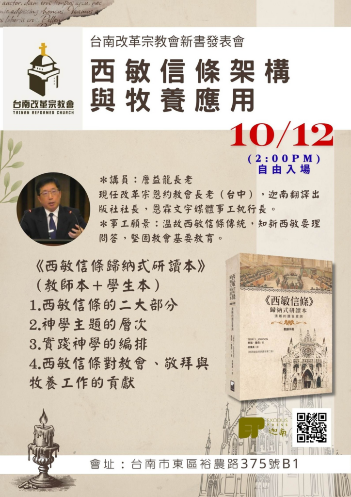October 12, 2025 A book launch was held at Tainan Reformed Church.