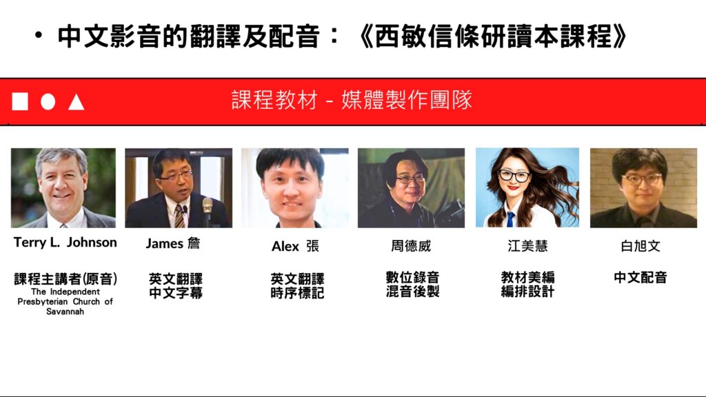 ◆ 西敏信條教育影片中文化配音案:
